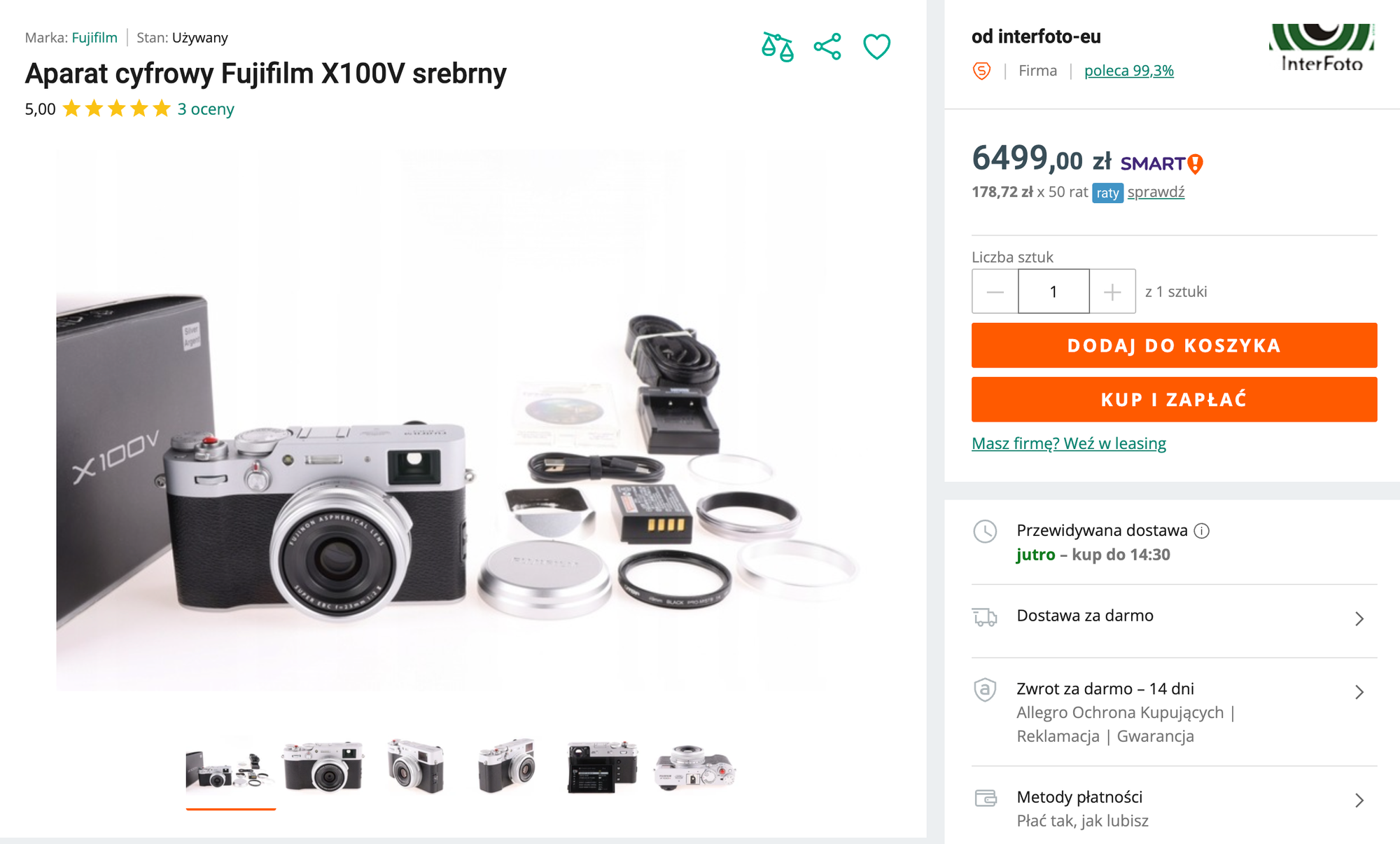 Same te akcesoria warte są ponad 600 zł, a konwerter, gdy się pojawia na aukcjach, najczęściej sprzedaje się za 800-1000 zł. Mimo to, kwota, jaka interesuje mnie za całość to 6500 zł. Czyli tyle samo, za ile można kupić „gołego” X100V: