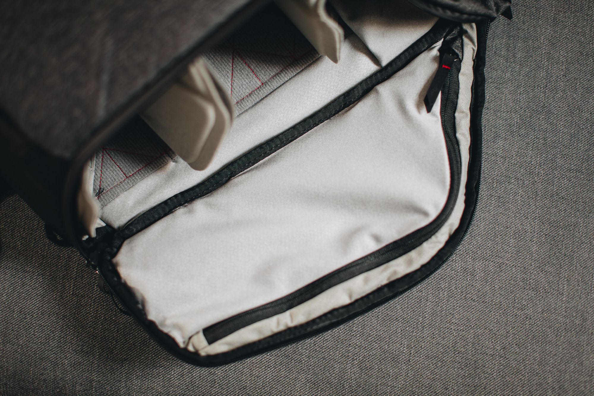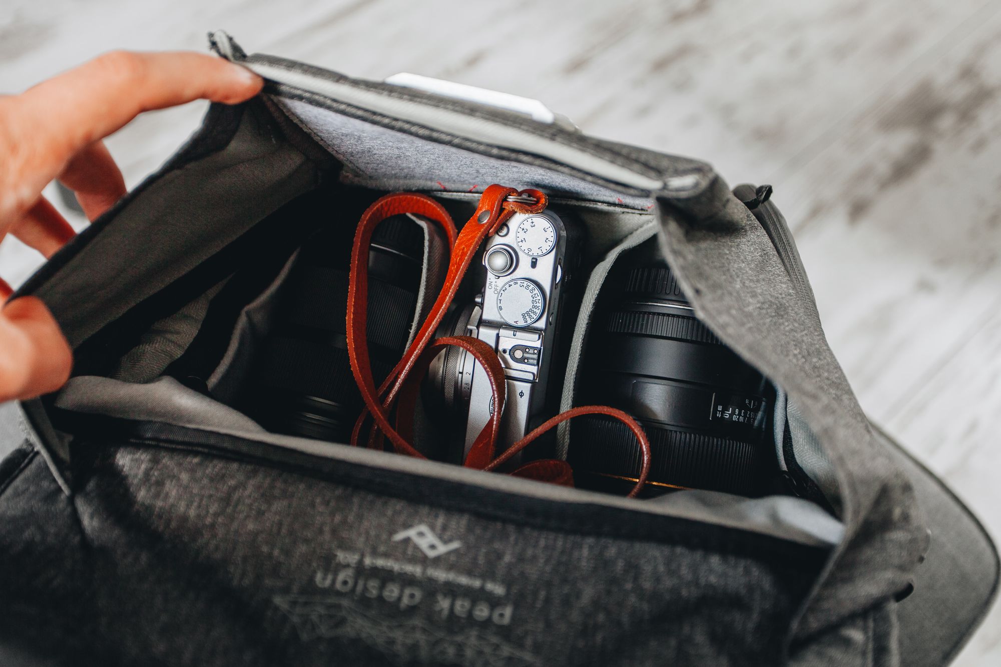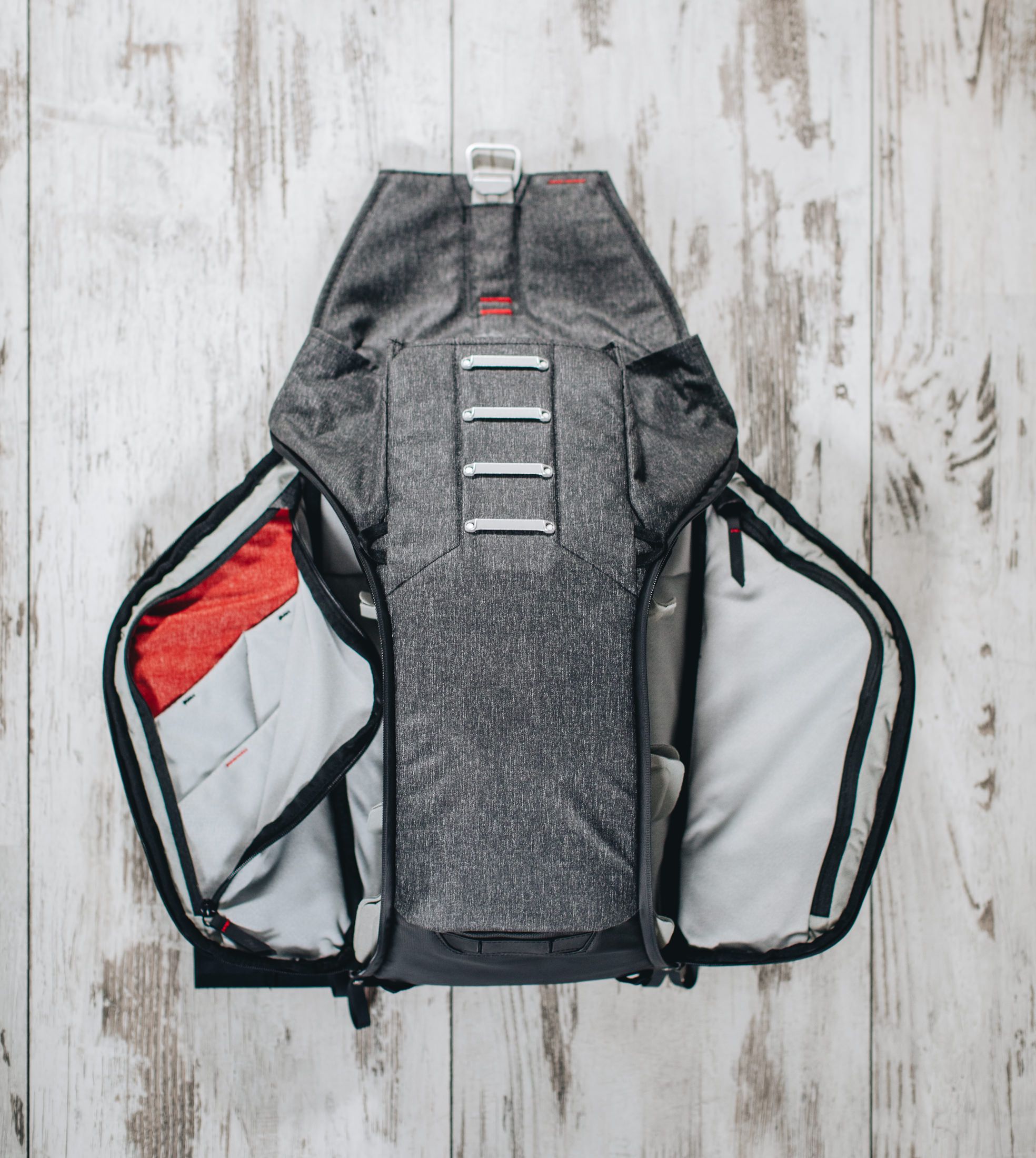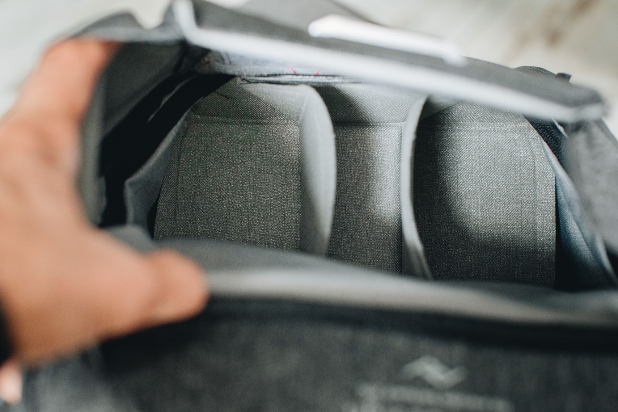 Unikalny dla Peak Design jest jednak sposób stawiania dodatkowych przegród za pomocą unoszonych klap (po dwie na każdej z przegród).