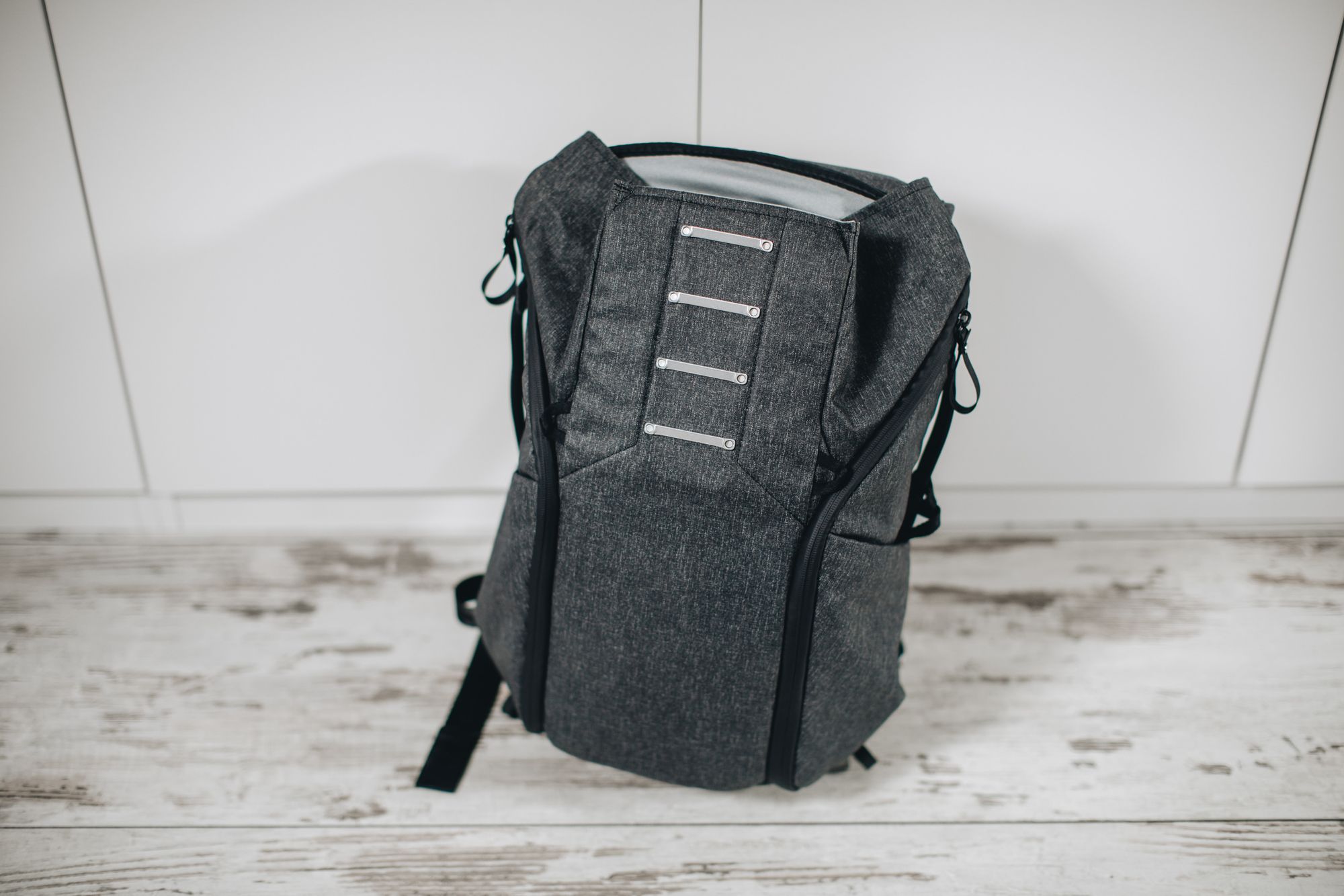 Nigdy nie chciałem mieć plecaka fotograficznego. Jestem przecież fotografem ślubnym, a ktoś taki plus plecak nigdy nie wyglądał dobrze w moich oczach (choć to pewnie tylko dlatego, że ubieram się do pracy elegancko). Wystarczyło jednak kilka sesji w górach czy trudniej dostępnych miejscach, wymagających niekrótkiego spaceru, żeby uznać wyższość plecaka nad moimi torbami w takich warunkach. Rekonesans trwał dosłownie moment — wpisałem backpack oraz wishlist w polu przeszukiwania swojej „bazy wszystkiego” (w DEVONthink) — pamiętałem bowiem, że tak opisałem kiedyś kilka linków na wypadek, gdybym zmienił zdanie w kwestii toreb. Większość ze wspomnianych odnośników kierowała do strony Peak Design. Oczywiście nie bez przyczyny — ich pierwsze kickstarterowe kampanie (najpierw torby naramiennej, później plecaka i dwóch innych toreb; obie rekordowe w tamtych czasach — zamiast $100k zebrano prawie $5M w pierwszej i zamiast $500k — ponad $6,5M w drugiej) obserwowałem z zapartym tchem. Wyglądało bowiem na to, że ktoś usiadł i zaprojektował plecak (i torby) fotograficzny od zera, kierując się głównie jego funkcjonalnością i to — jak zostało przedstawione w materiałach reklamowych — bez kompromisów.