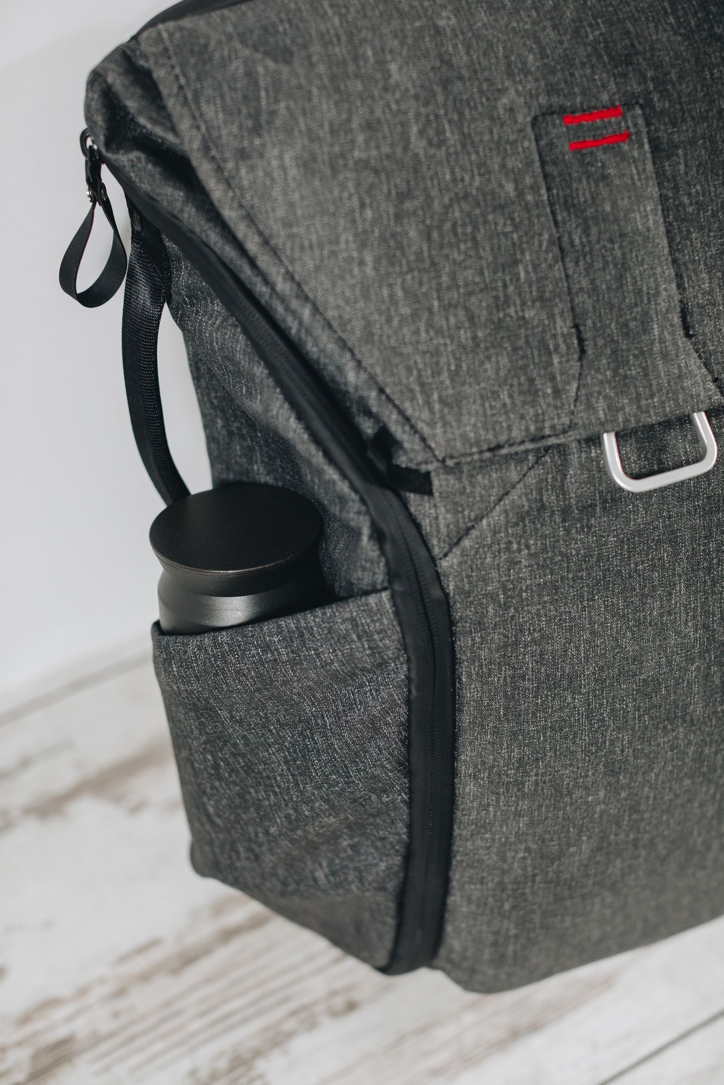 Zewnętrzne kieszenie bez problemu mieszczą mojego małego Kinto Tumbler (pisząc „bez problemu”, mam na myśli „pewnie nawet nie orientują się, że coś zostało do nich włożone”), podobnie jak 600-mililitrowa butelka mojej żony.
